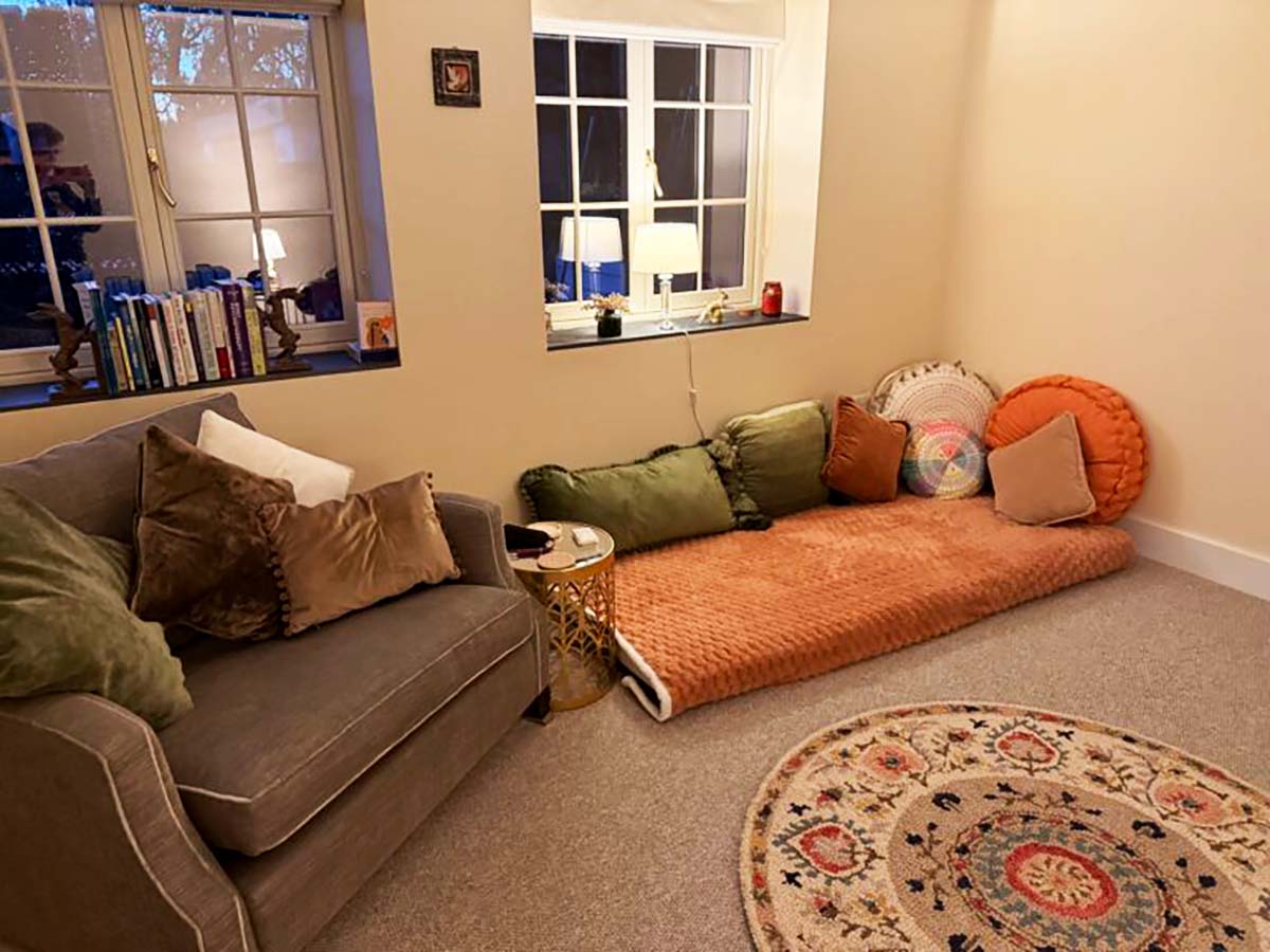 In my therapy room in Weldon, Northamptonshire, we have the choice to work from exceptionally comfortable snuggler chairs or utilise a floor-based mattress to help you feel grounded and supported. While I have offered video therapy since 2008 to ensure accessibility, I find a special resonance in in-person work, where the shared energy of the room supports deep, relational healing.